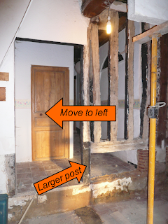 Then through friends we meet someone who knows about old houses. He comes, looks at the mess and shows us things we have never noticed: like the stone pillars of the gate to the veranda that have been cut down from an old doorway; and the beams in the gîte that come from old colombage - the holes in the beams were cut to take the wooden cross pieces between the mud and horsehair.